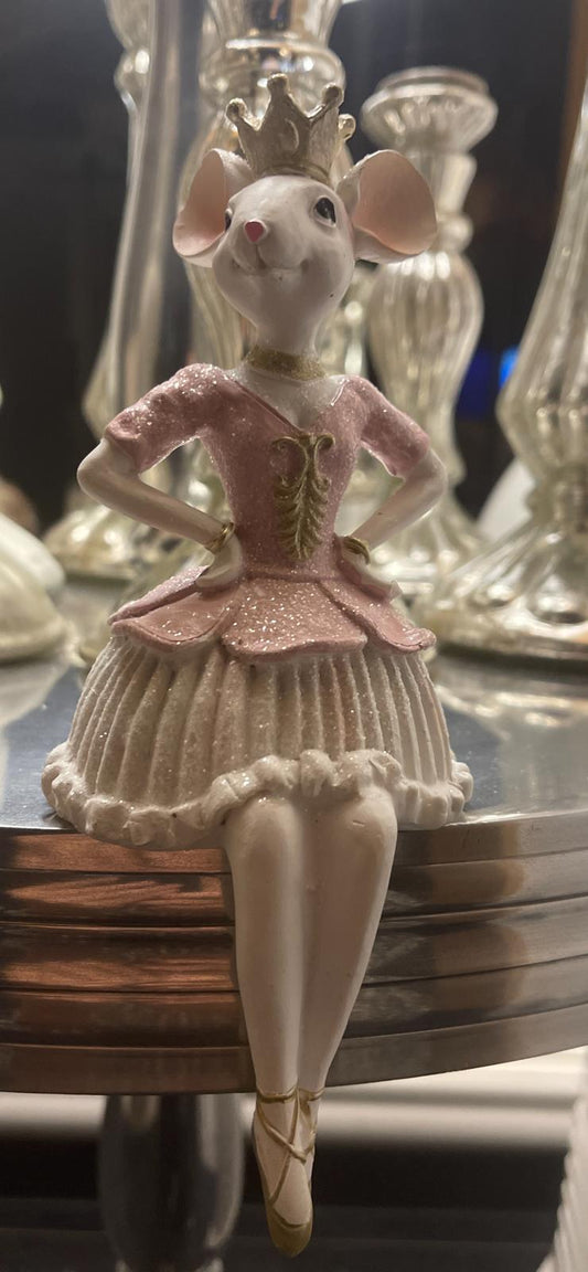 Clayre & Eef | Beeld ballerina muis zittend roze/goud 19cm